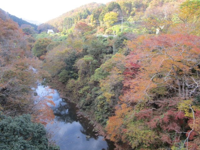 ![]() ![]() 紅葉の隠れた名所は、国道123号線からモビリティリゾートもてぎ北ゲートに向かう道路にかかる橋から逆川を覗く場所にあります。ここが隠れた名所というのは、一般の方はまず気づくことができないからです。なぜなら一般的に北ゲートには車で向かうため、車中からは橋の下を覗くことができないためです。また橋の上で駐車することは危険のため禁止されています。徒歩で橋を渡って初めて気がつきます。徒歩でも行けるのは地元民の特権です。