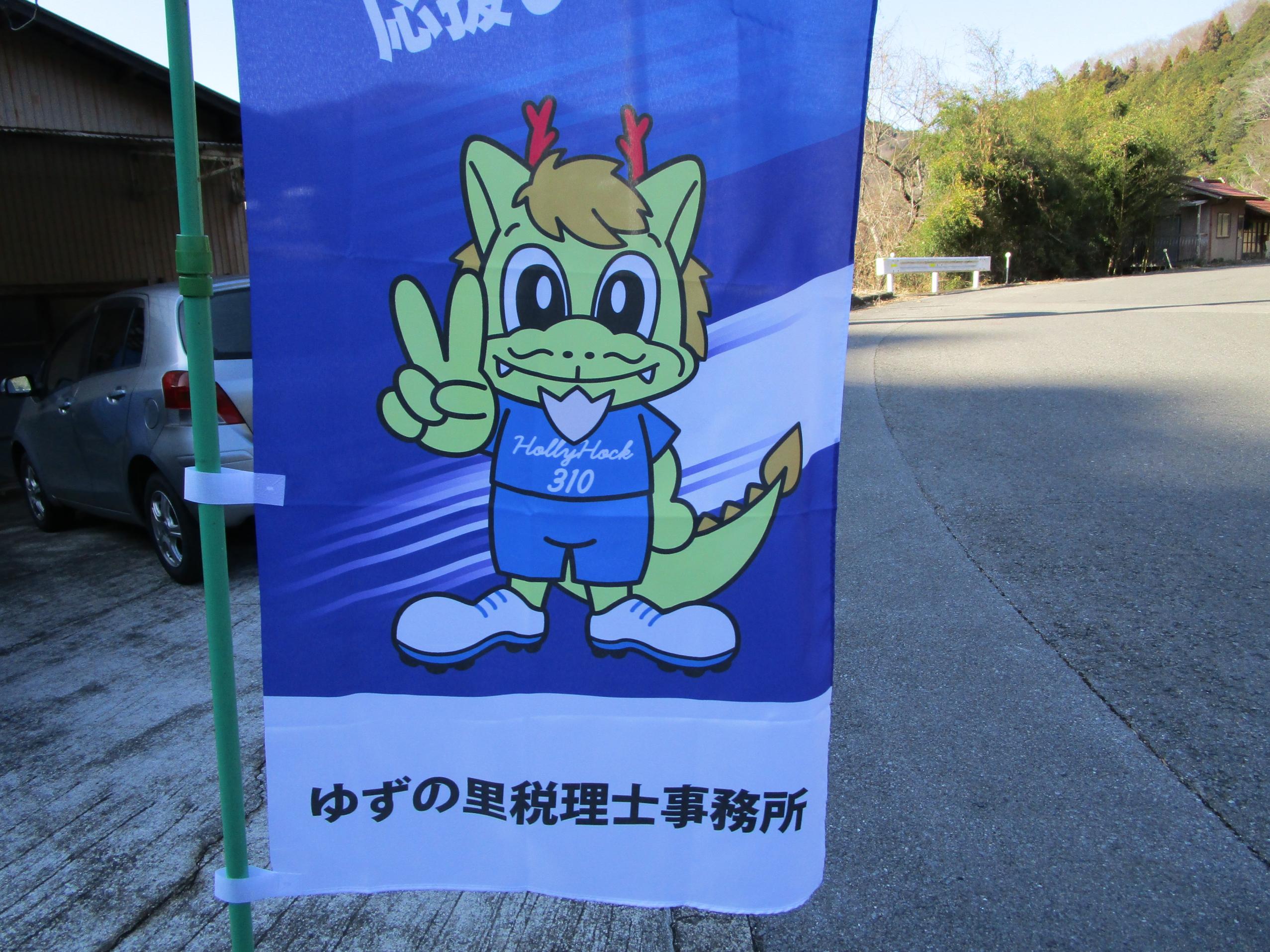 アウ!!水戸ホーリーホックのぼりに事務所名を入れました |